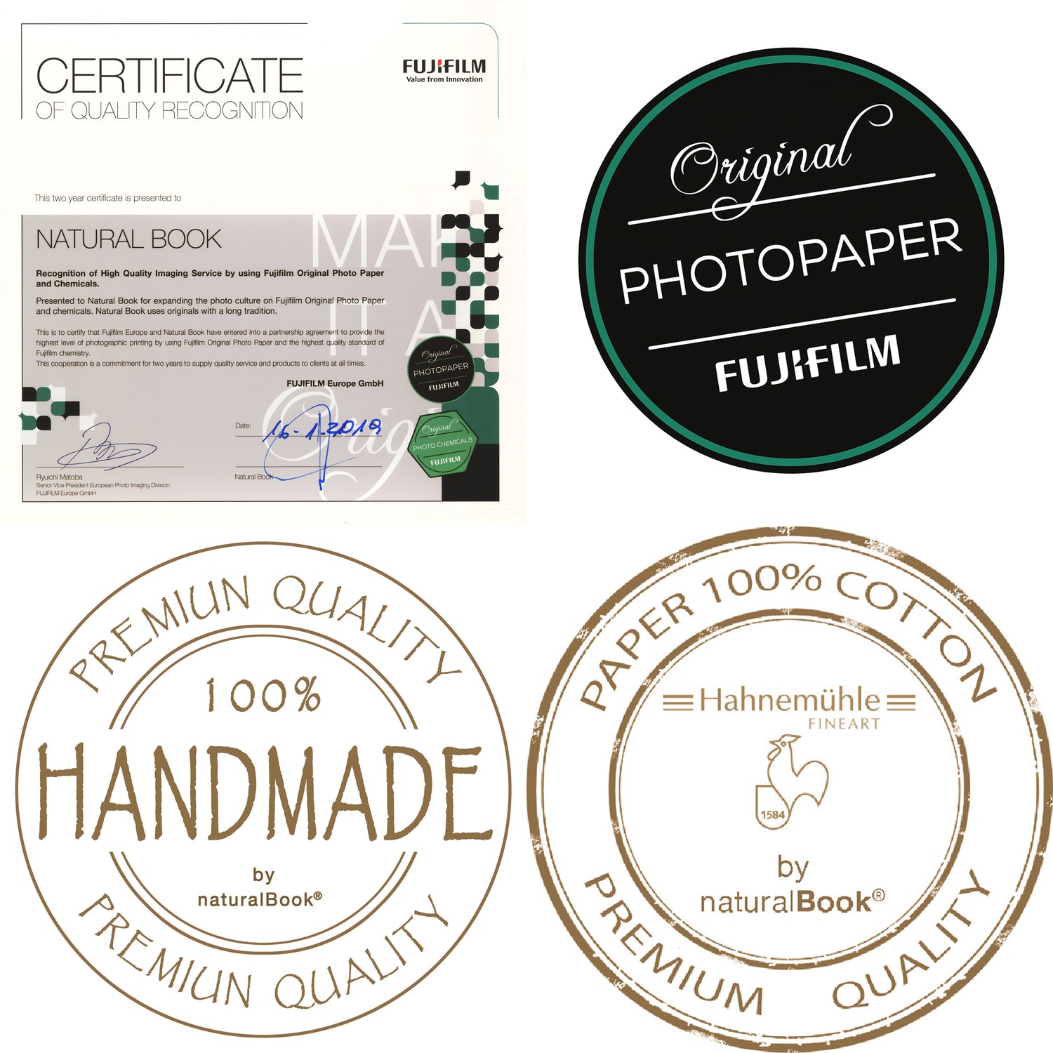 Certificados de calidad del papel usado, a parte de nuestro compromiso con el medio ambiente y la creación de todos nuestros productos 100% a mano